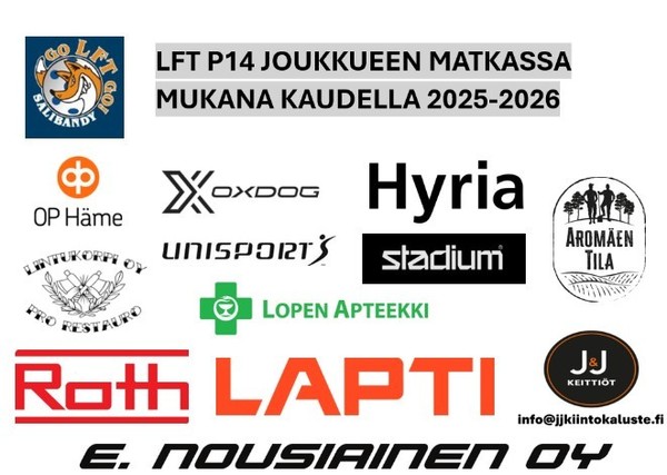 LFT P14 haluaa lisäksi esittää suuret kiitokset kaikille kauden 2025–2026 tukijoille, joiden panos mahdollistaa joukkueen harjoittelun ja pelaamisen kilpatasolla.